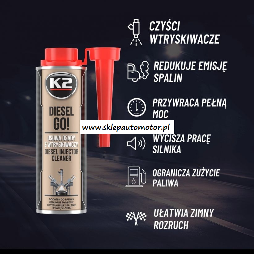 K2 Diesel Go! posiada doskonałe właściwości czyszczące i smarujące dzięki czemu wydłuża żywotność całego układu zasilania.