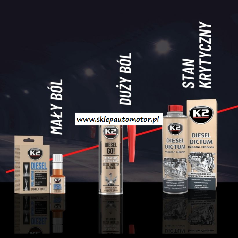 Profesjonalny środek do czyszczenie wtryskiwaczy w formie dodatku do oleju napędowego K2 Diesel Go! to uniwersalna formuła czyszcząca, opracowana z myślą najnowszych silnikach diesla z wysokociśnieniowymi wtryskiwaczami z systemem common rail i układem DPF.