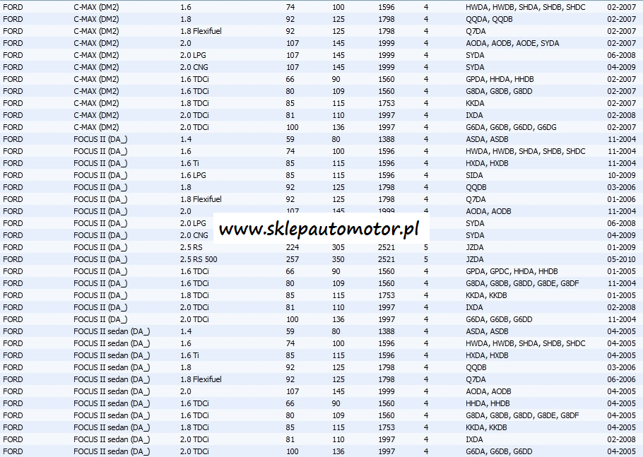Model:C-MAX, C70, FOCUS, S40, V50