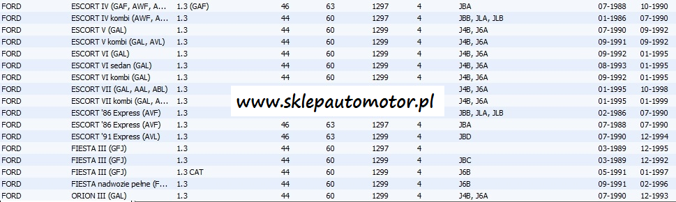 Typ:ESCORT VI 09/1992-01/1995,ESCORT VII 01/1995-08/2002,FIESTA III 01/1989-01/1997,ORION III 07/1990-09/1996