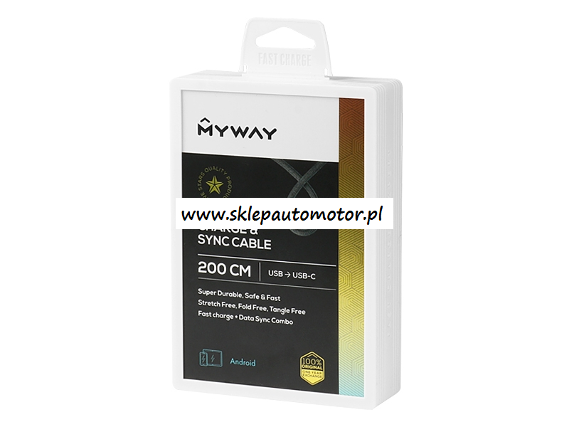 KABEL DO ŁADOWANIA I SYNCHRONIZACJI W OPLOCIE Z MIKROFIBRY 200CM USB - USB-C MYWAY