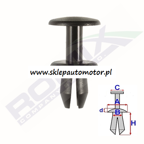 Wymiary:A 15,3 H 12,4 C 16,9 D 2 w otwór ø 8