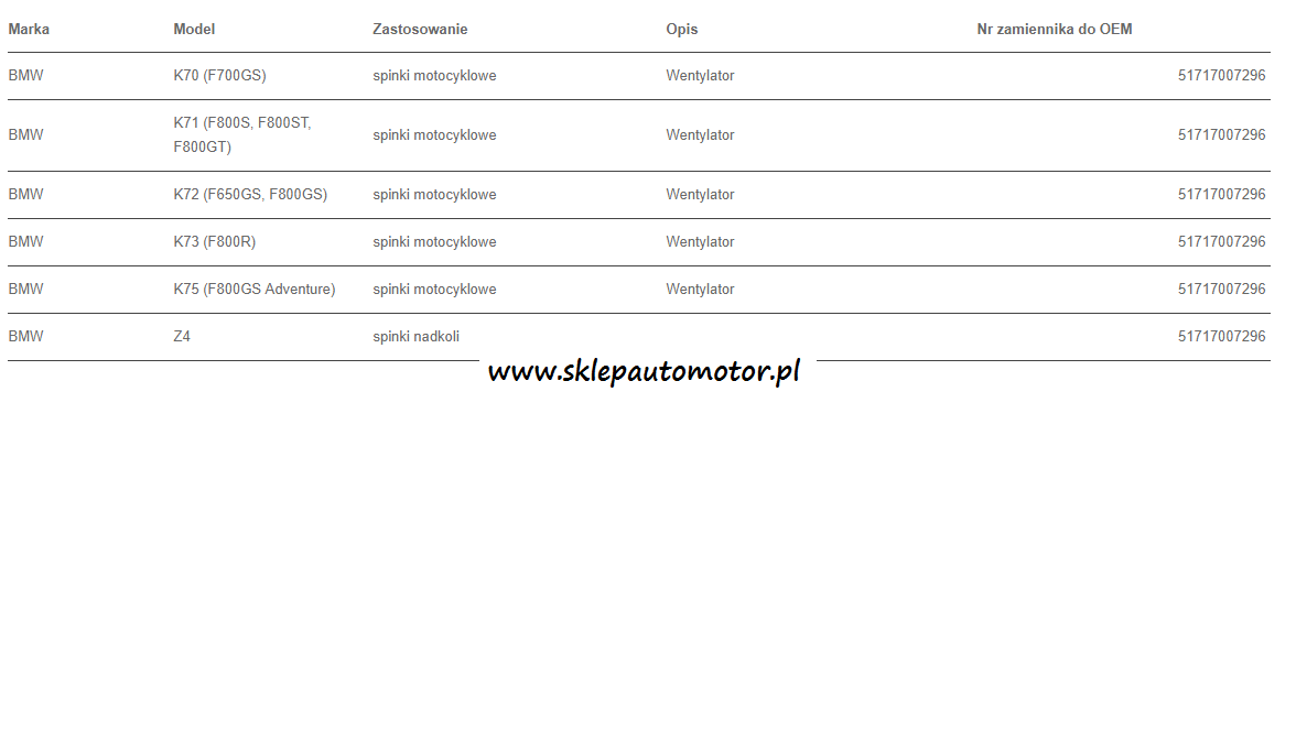 Numer oryginału 51717007296