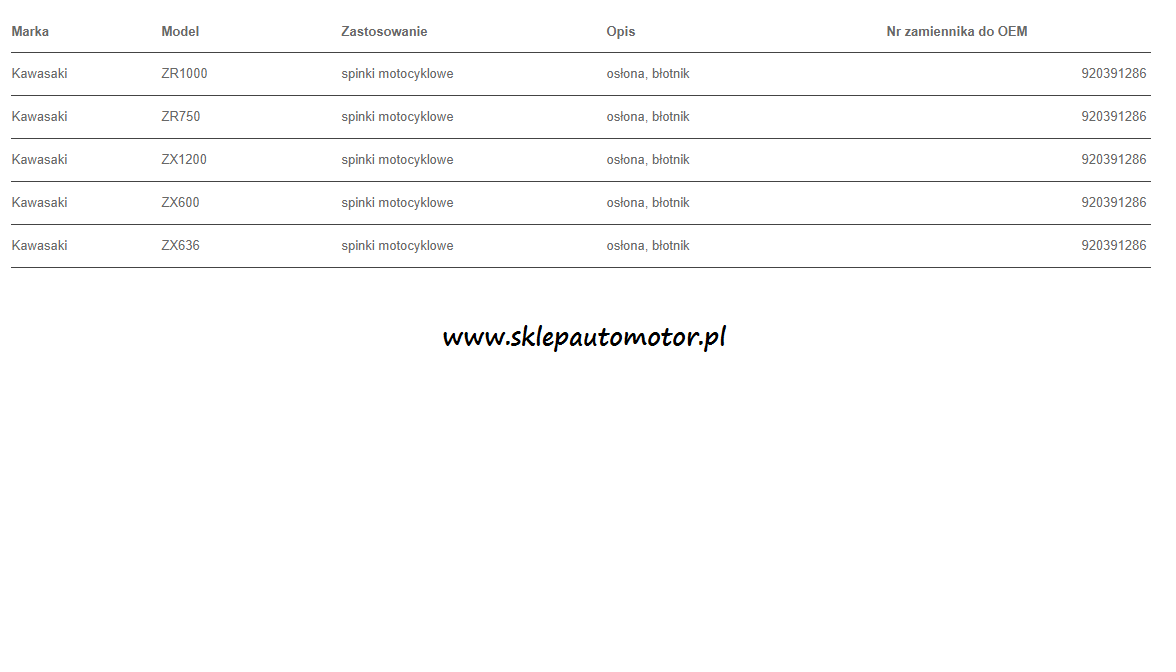 Numer oryginału 920391286