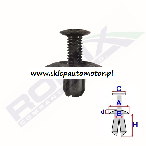 Wymiary:A 19,9 C 9,8 d 2,2 H 8,9 w otwór ø 7
