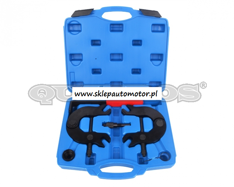 Zastosowanie: AUDI A4, A6, A8 2000-2006 Silniki: 3.0 V6 30v: AVK, ASN, BBJ Zawartość zestawu: Trzpień blokujący wał korbowy OEM T40026 Przyrząd ustalający wałki rozrządu (2 szt.) OEM T40030 Nasadka specjalna wałka rozrządu OEM T40028 Napinacz łańcucha OEM T40011 Klucz rolki napinacza OEM T10020