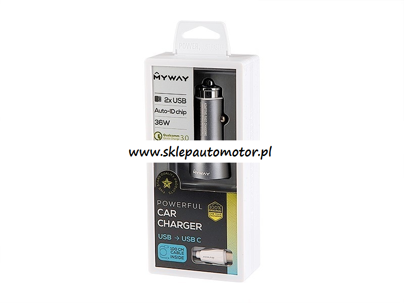 ŁADOWARKA 12/24V QC3.0 2*USB AUTO-ID MAX.4.2A + KABEL USB-USBC 100CM MYWAY