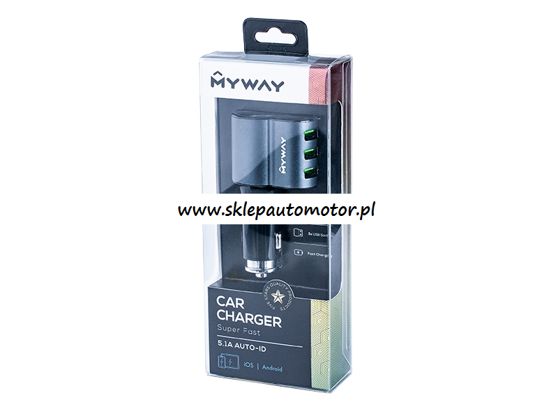 Ładowarka posiada funkcję automatycznej identyfikacji baterii urządzenia (Auto-ID) dostosowując odpowiednio moc ładowania. Maksymalna moc wyjściowa przy podłączonym 1 urządzeniu 5.1A. Wbudowane gniazdo EURO wspiera zapalniczki samochodowe. W zestawie znajduje się kabel 100 cm do ładowania i synchronizacji z zespoloną wtyczką microUSB + Lightning. Produkt o wysokiej jakości, w atrakcyjnym opakowaniu, klasa PREMIUM.