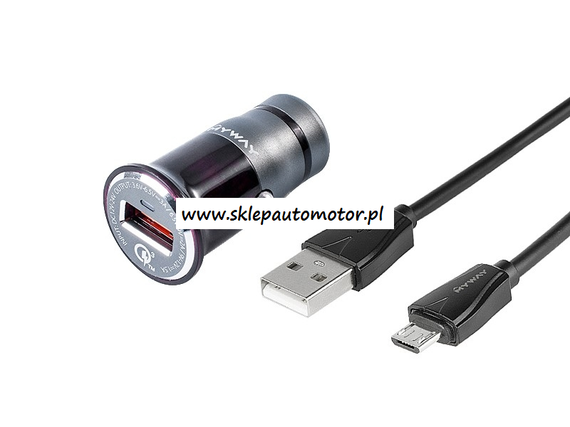 Ładowarka z Quick Charge 3.0 (QC3.0) która umożliwia bardzo szybkie ładowanie baterii urządzeń wspierających tę technologię. Do pełnego naładowania baterii potrzeba trzykrotnie mniej czasu w porównaniu do standardowej ładowarki. W zestawie znajduje się kabel 100 cm do ładowania i synchronizacji z zespoloną wtyczką microUSB + Lightning. Produkt o wysokiej jakości, w atrakcyjnym opakowaniu, klasa PREMIUM.