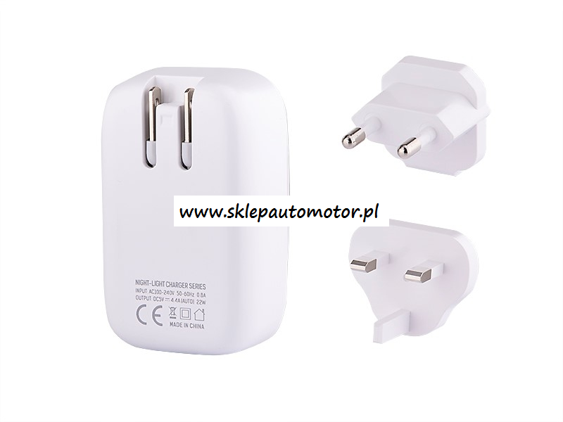 ŁADOWARKA SIECIOWA ZASILACZ 4*USB 4.4A + DOTYKOWA LAMPKA LED + ADAPTERY (WTYCZKI GNIAZD EU,UK,USA) MYWAY