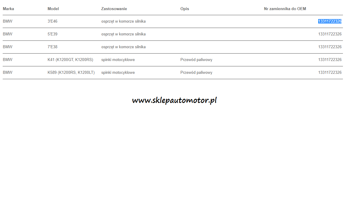 Numer oryginału 13311722326