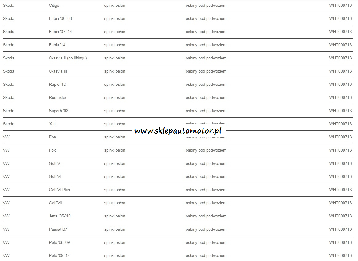 NAKRĘTKA OSŁON PODWOZIA VW AUDI SKODA
