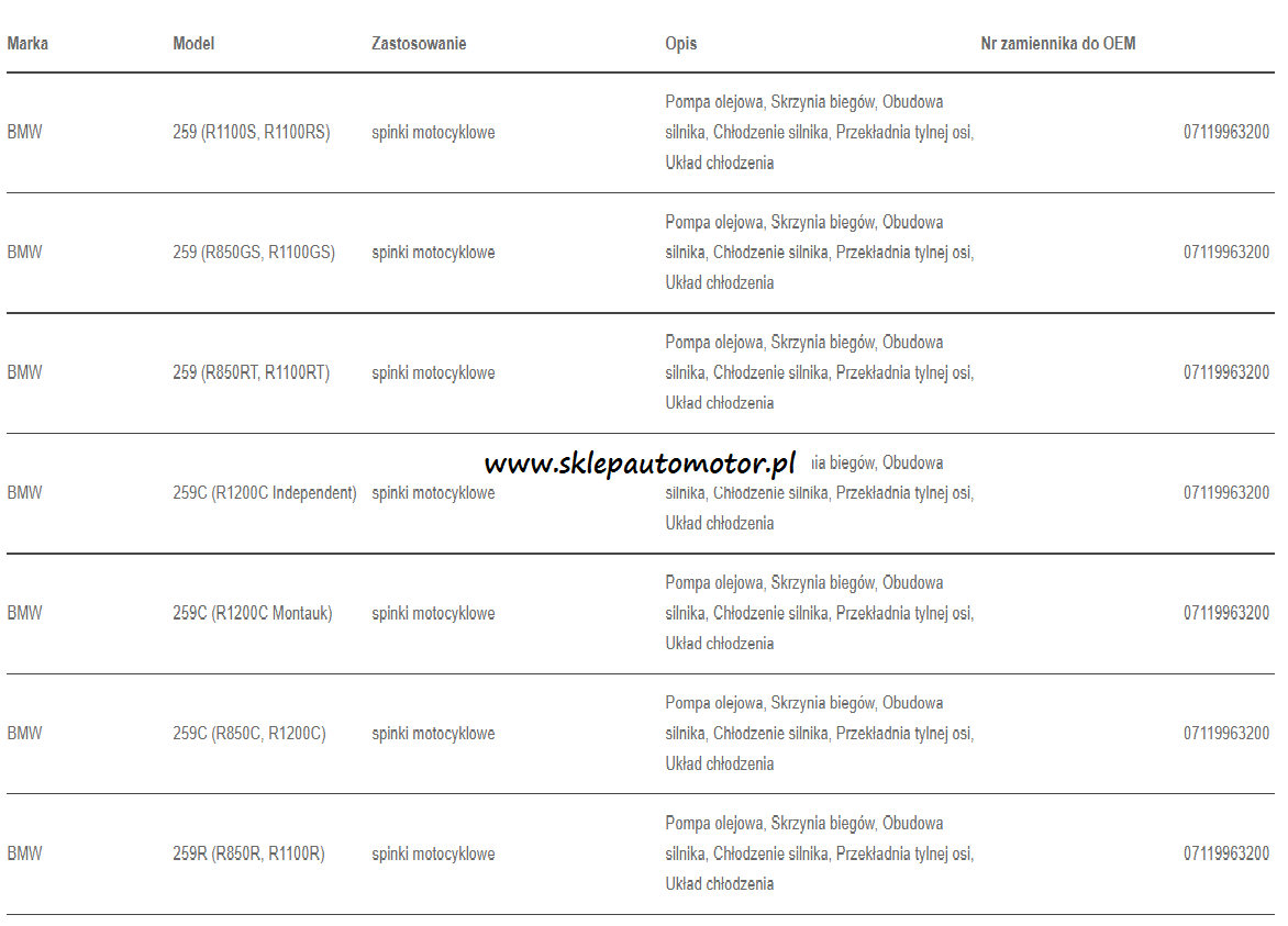 Numer oryginału 07119963200