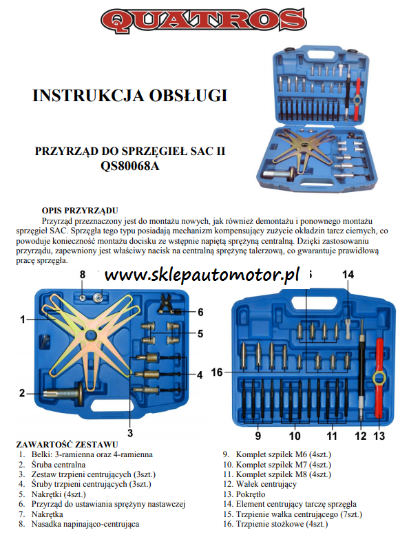Zastosowanie: Sprzęgła samoregulujące VW-AUDI, BMW, MERCEDES, OPEL, RENAULT i inne Niezbędny do wywołania wstępnego naprężenia w centralnej sprężynie talerzowej Pozwala na prawidłowe ustawienie tarczy względem łożyska prowadzącego i oporowego, W zestawie belki cztero- i trójramienne