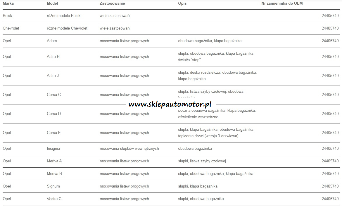 SPINKA LISTEW PROGOWYCH SŁUPKÓW OPEL