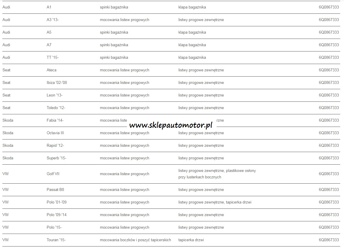SPINKA LISTEW PROGOWYCH VW SKODA SEAT