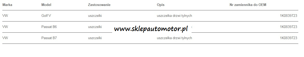 SPINKA USZCZELKI DRZWI VW GOLF/PASSAT