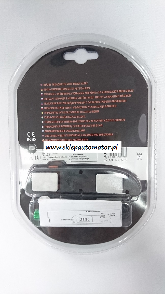 Termometr zewnętrzny i wewnętrzny z sygnalizacją gołoledzi.
