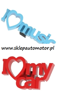 w samochodzie oraz motoryzacji. Odświeżacz w kształcie napisów „I love music"