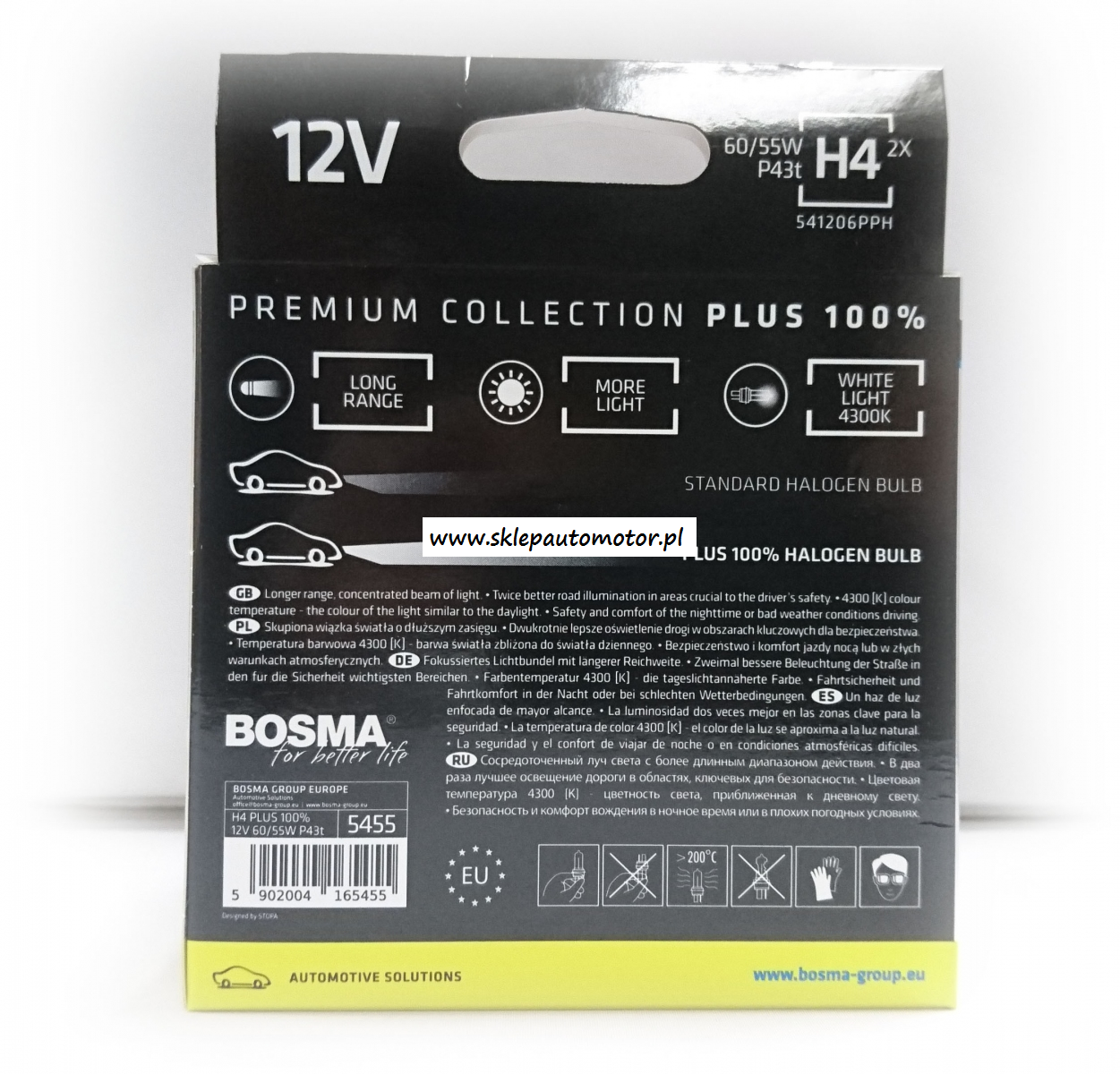 ŻARÓWKA H4 PLUS 100% 12V 60/55W P43T KPL 2 SZT.