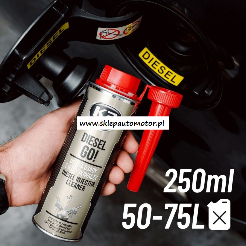 Profesjonalny środek do czyszczenie wtryskiwaczy w formie dodatku do oleju napędowego K2 Diesel Go! to uniwersalna formuła czyszcząca, opracowana z myślą najnowszych silnikach diesla z wysokociśnieniowymi wtryskiwaczami z systemem common rail i układem DPF.