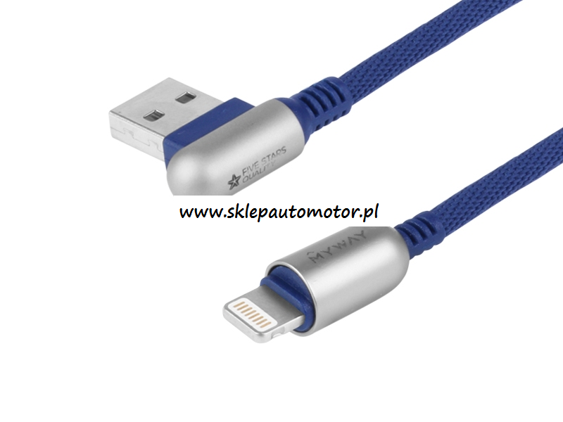 KABEL DO ŁADOWANIA I SYNCHRONIZACJI 120CM W OPLOCIE Z MIKROFIBRY DWUSTRONNE KĄTOWE USB - APPLE IPHONE NAVY MYWAY