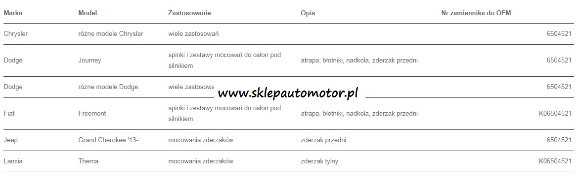 KOŁEK ROZPOROWY CHRYSLER JEEP FIAT DODGE
