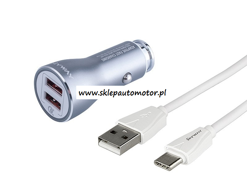 ŁADOWARKA 12/24V QC3.0 2*USB AUTO-ID MAX.4.2A + KABEL USB-USBC 100CM MYWAY