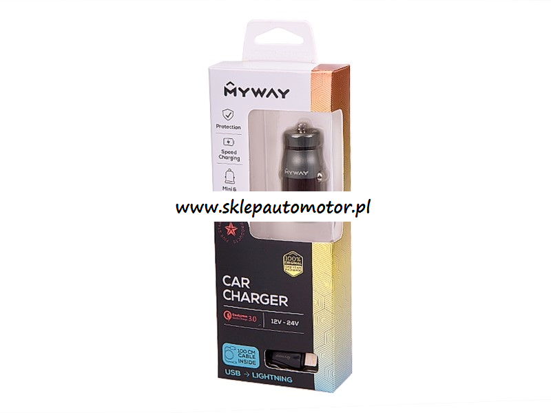 ŁADOWARKA SAMOCHODOWA 12/24V QC3.0 1xUSB + KABEL USB-LIGHTNING 100CM MYWAY