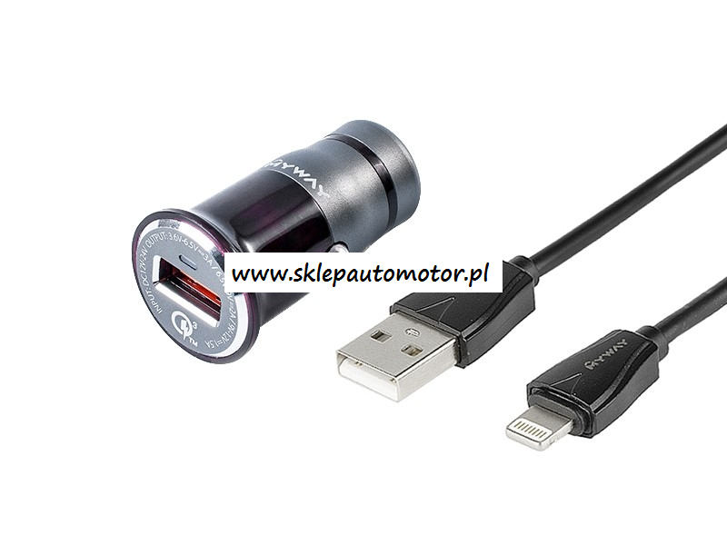 ŁADOWARKA SAMOCHODOWA 12/24V QC3.0 1xUSB + KABEL USB-LIGHTNING 100CM MYWAY
