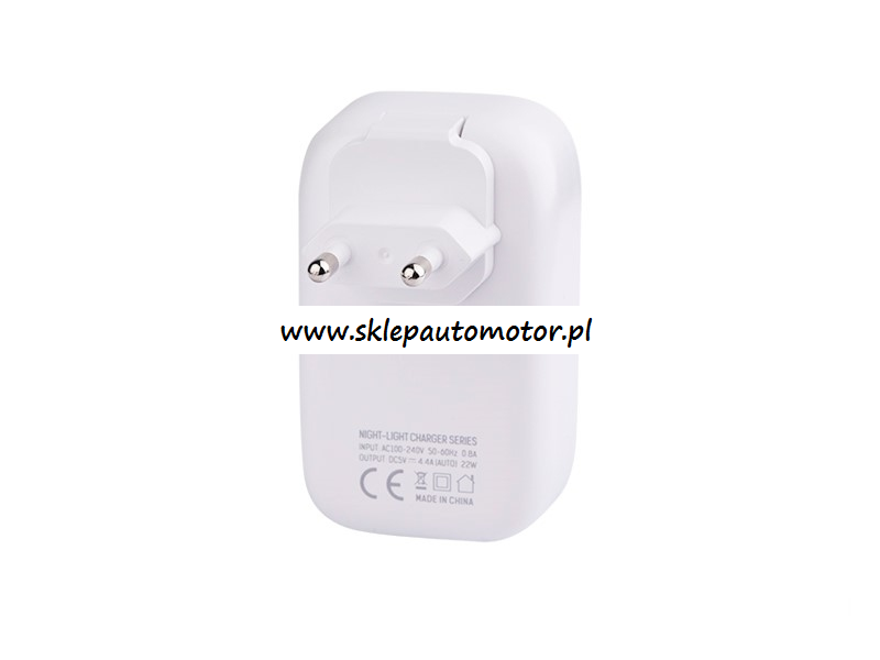 ŁADOWARKA SIECIOWA ZASILACZ 4*USB 4.4A + DOTYKOWA LAMPKA LED + ADAPTERY (WTYCZKI GNIAZD EU,UK,USA) MYWAY