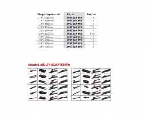 Płaskie uniwersalne wycieraczki bezprzegubowe - typu Aerotwin/ Linia Premium Dostępne w 13 rozmiarach.