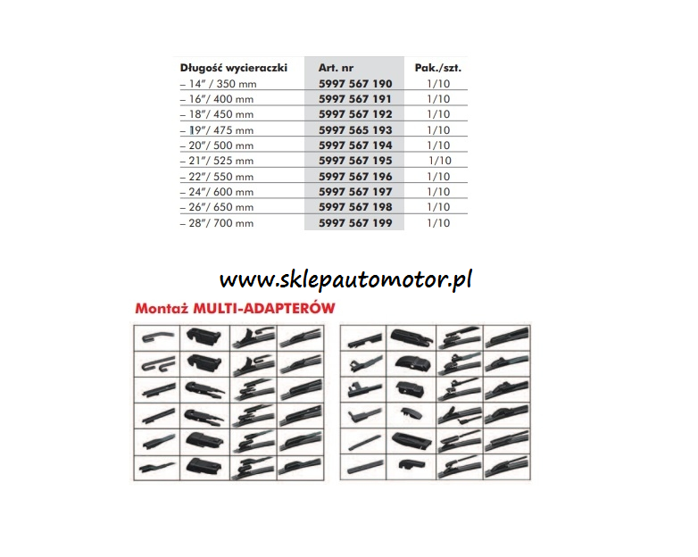 Płaskie uniwersalne wycieraczki bezprzegubowe - typu Aerotwin/ Linia Premium Dostępne w 13 rozmiarach.