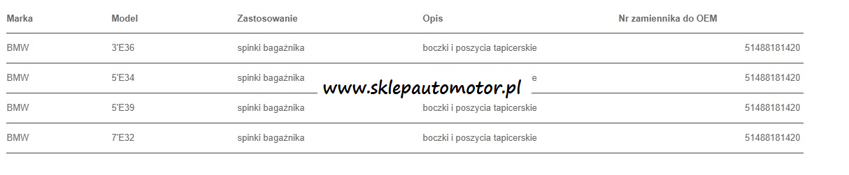 SPINKA BAGAŻNIKA, BOCZKI I POSZYCIA TAPICERSKIIE DO BMW