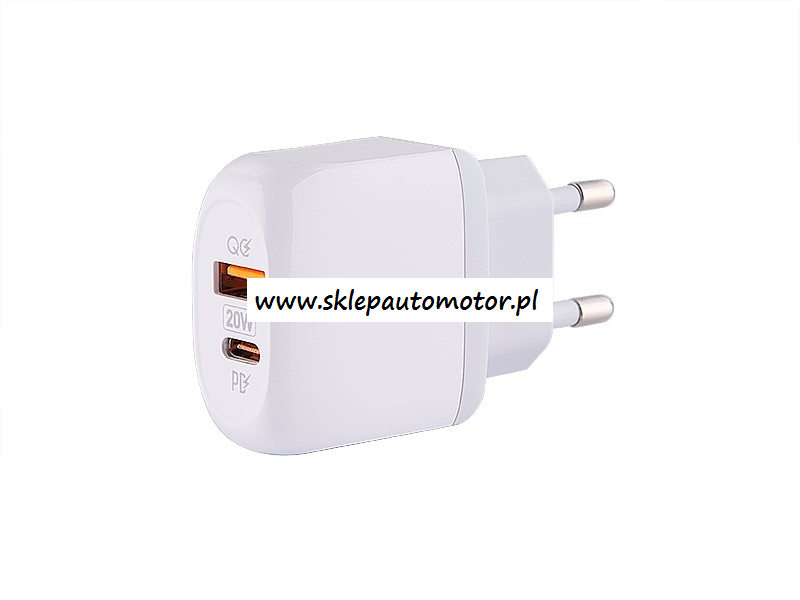 Ładowarka sieciowa z gniazdem USB Quick Charge 3.0 (QC3.0) oraz gniazdem USB-C PD (Power Delivery). Technologia Quick Charge 3.0 (QC3.0) umożliwia bardzo szybkie ładowanie baterii urządzeń wspierających tą technologię. Do pełnego naładowania baterii potrzeba trzykrotnie mniej czasu w porównaniu do standardowej ładowarki. Gniazdo typu USB-C wspiera szybkie ładowanie w technologii Power Delivery najnowszych telefonów i innych urządzeń mocą nawet do 20W. W zestawie BRAK kabla.