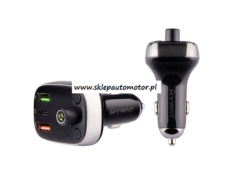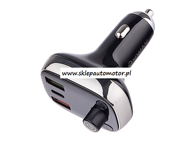 Transmiter FM z funkcją Bluetooth HandsFree oraz 3 gniazdami do ładowania urządzeń. Uniwersalny dla pojazdów 12/24V. Ładowarka. Gniazdo USB-A z funkcją Auto-ID,która automatycznie identyfikuje baterię urządzenia dostosowując odpowiednio moc ładowania. Gniazdo USB-C wspiera szybkie ładowanie Power Delivery (PD). Gniazdu USB-A z funkcją Quick Charge 4.0+ (QC4.0+), która umożliwia bardzo szybkie ładowanie baterii urządzeń wspierających tą technologię. Transmiter FM i Bluetooth HandsFree. Obsługuje transmisję bezprzewodową Bluetooth 5.0 A2DP z możliwością podłączenia 2 telefonów, spełnia funkcję zestawu głośnomówiącego - posiada wbudowany mikrofon, a dźwięk przenosi do głośników pojazdu za pośrednictwem transmisji FM, wspiera także karty TF i napędy USB. Woltomierz posiada wyświetlacz pokazujący aktualny stan akumulatora pojazdu.