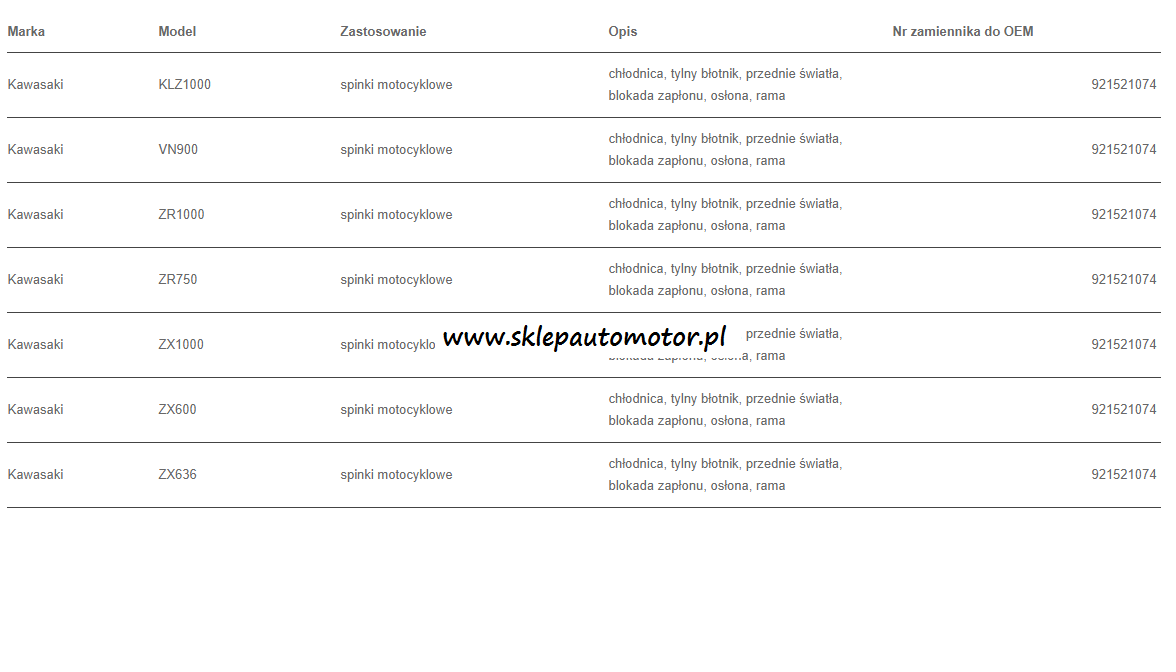 Numer oryginału 921521074