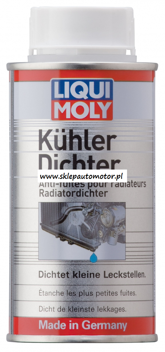 Małe wycieki spowodowane uderzeniami kamieni, nieszczelności po naprawie (lutowaniu) i pęknięcia włoskowate są łatwe do zlokalizowania (najłatwiej jest zauważyć ubytek płynu ze zbiorniczka wyrównawczego). Liqui Moly Uszczelniacz do chłodnic całkowicie uszczelnia takie wycieki natychmiast z dużą łatwością. Chroni komorę spalania od szkód spowodowanych przez przedostawanie się do niej płynu chłodzącego. Zastosowanie: Do wszystkich układów chłodzenia i ogrzewania z i bez filtra płynu. Nadaje się również do chłodnic aluminiowych i plastikowych. Zawartość opakowania wystarcza na 10 litrów płynu chłodzącego. Kompatybilny ze wszystkimi standardowymi płynami stosowanymi w układach chłodzenia. Można również stosować ten dodatek jako środek profilaktyczny.